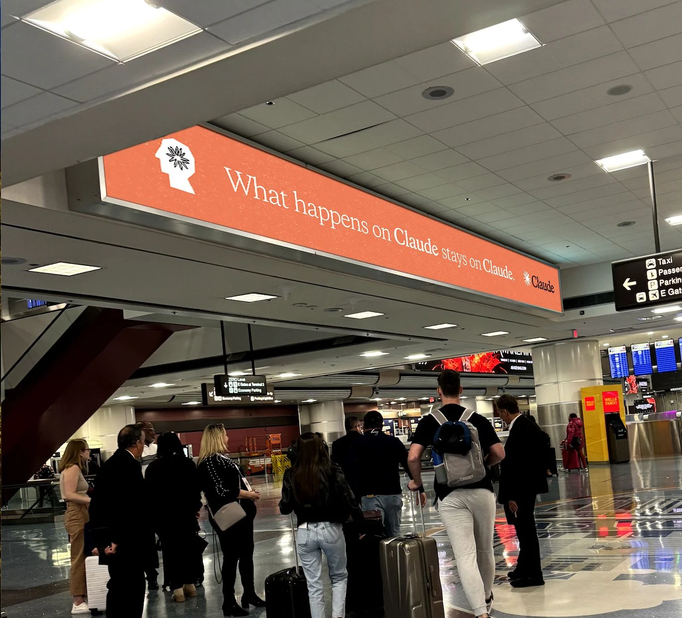 With tens of thousands of enterprise buyers descending on Las Vegas, Anthropic needed creative that could cut through the noise of a conference saturated with AI messaging. The work had to feel premium and distinctive — not another tech booth wrapped in gradients and buzzwords. And it had to do it across a demanding mix of formats: airport signage, wall wraps, marquee displays, and 22 digital screens running video loops at Planet Hollywood.