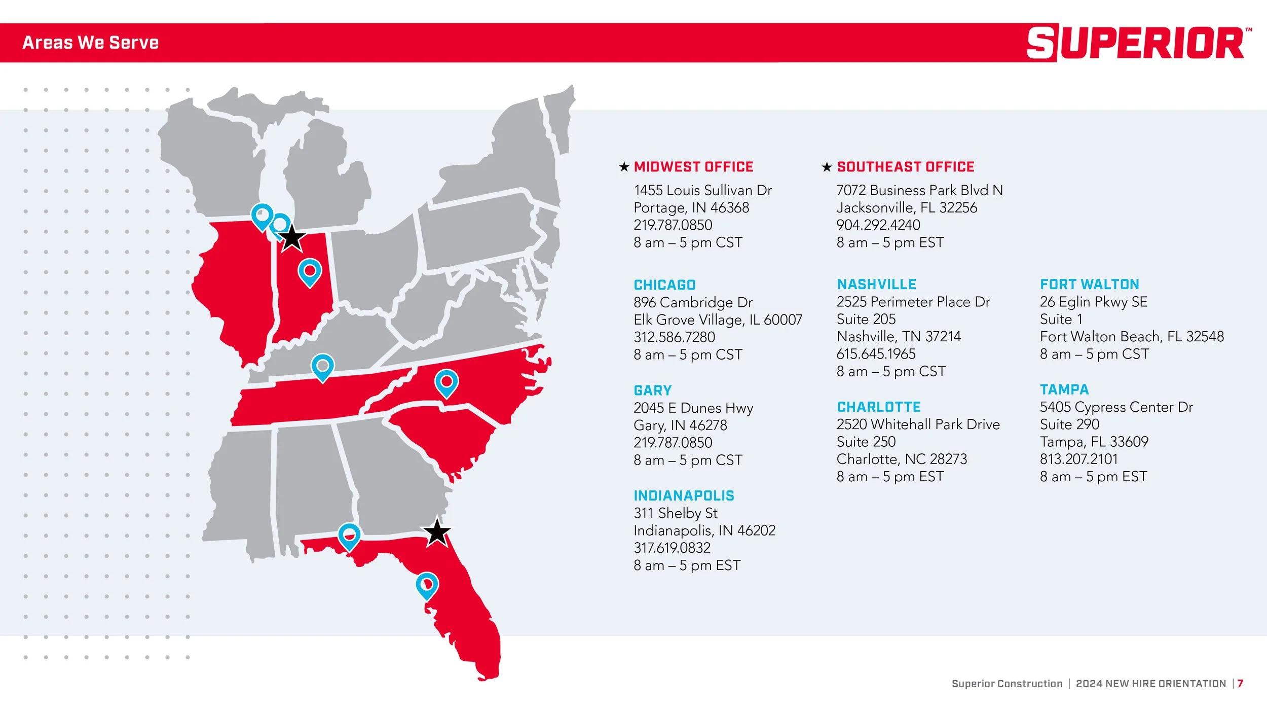 Founded in the 1920s in Gary, Indiana, Superior Construction has a rich history rooted in building America’s infrastructure. From schools and post offices to libraries, their early projects helped shape the nation. Over the decades, the company has expanded its expertise to tackle large-scale and complex projects in transportation, industrial sectors, and vital infrastructure across the country. With a steadfast commitment to quality, safety, and integrity, Superior Construction continues to play a key role in shaping the built environment.